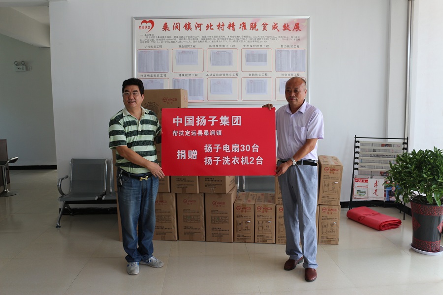 為進一步幫助幫扶村困難群眾解決實際生活困難,按照幫扶計劃,7月31日上午,揚子集團向河北村捐贈了揚子電扇30臺、揚子洗衣機2臺等一批揚子產(chǎn)品,向該村徐安俊、趙廣帥兩家特困戶送上了洗衣機和電風扇,炎炎夏日送去揚子一片愛心,同時鼓勵貧困戶樹立攻堅脫貧信心,增強發(fā)展意識,依靠辛勤的勞動,早日脫貧。