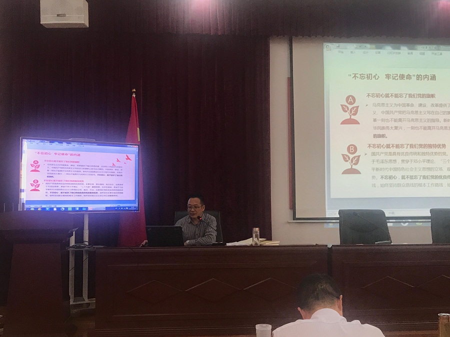 黨課上,闞乃天以為什么要開展“不忘初心、牢記使命”主題教育、習近平新時代中國特色社會主義思想的深刻內涵及“不忘初心、牢記使命”奮力推動揚子二次振興三個板塊深刻闡述了中國共產黨人的“初心”和“使命”及“不忘初心、牢記使命”的重要意義和內涵。