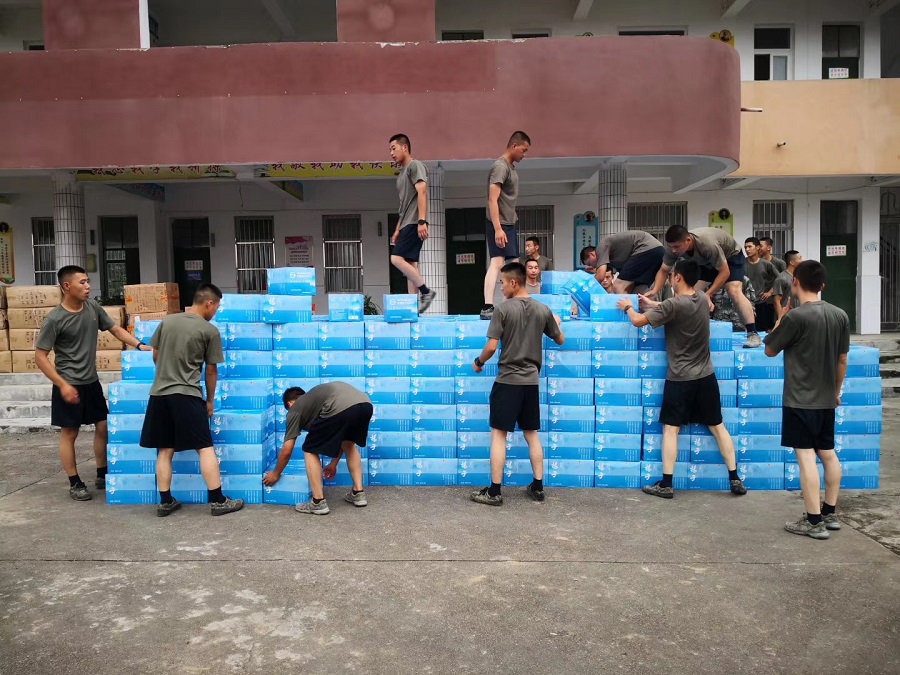 7月21日下午,中國揚子集團黨委書記、董事長、總經理闞乃天一行帶著濃濃的擁軍情前往全椒縣赤鎮慰問奮戰在抗洪搶險一線的駐滁官兵,向他們表示崇高敬意和親切慰問,并將1000箱揚子富硒山泉水送到防汛抗洪的解放軍官兵手中。
