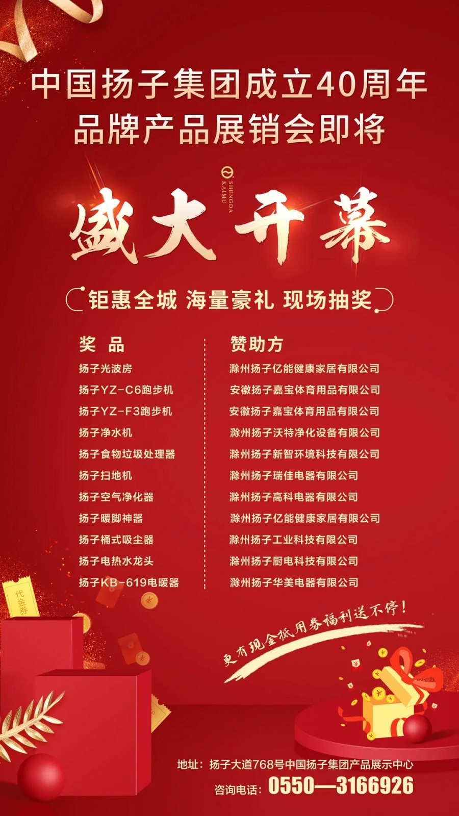 中國揚子集團(tuán)成立40周年揚子產(chǎn)品展銷會即將盛大開幕!