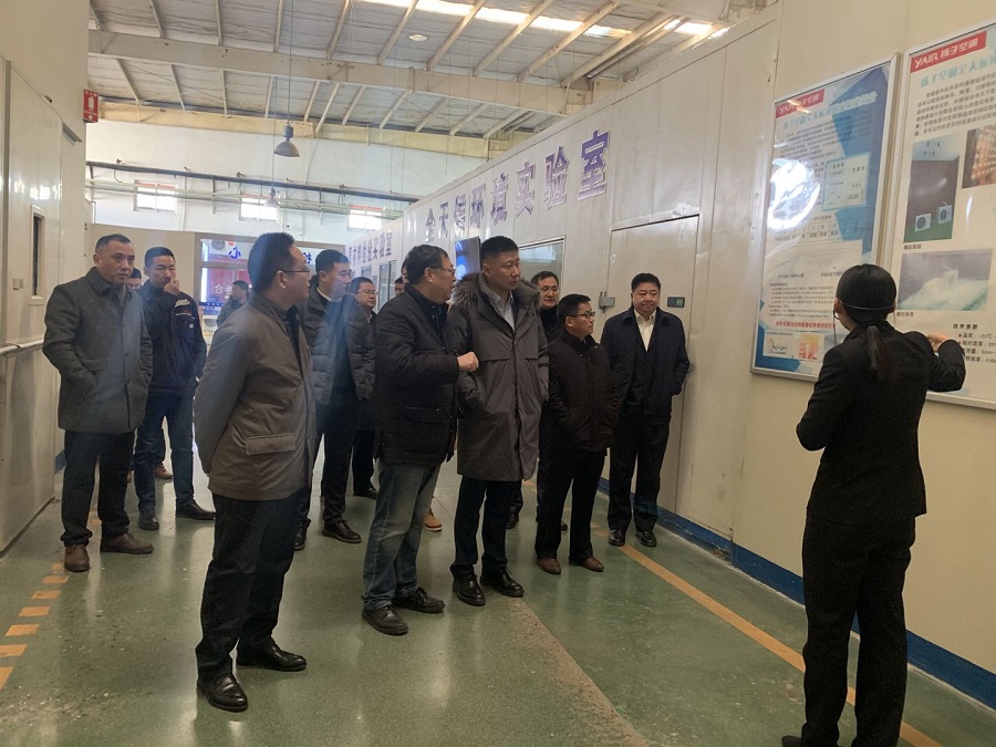 冮建一行先后參觀了揚子集團產品展示中心及揚子空調公司、揚子工業公司、揚子空氣源公司生產基地,詳細了解了各企業的生產經營情況和運營模式等。