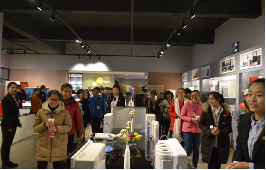 隨后,我們又安排同學們參觀了凈水展廳。同學們看到了這么多款式的凈水機,不禁張大了嘴巴,紛紛拿出手機和照相機拍照,并且對各個不同功能的凈水機對我們的講解員提問,還有部分家里已經裝了凈水機的同學主動為其他感興趣的同學們充當起了小小講解員。