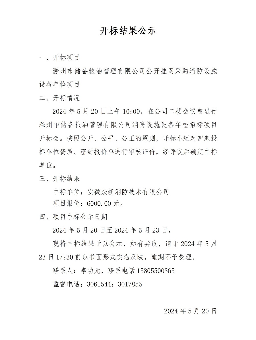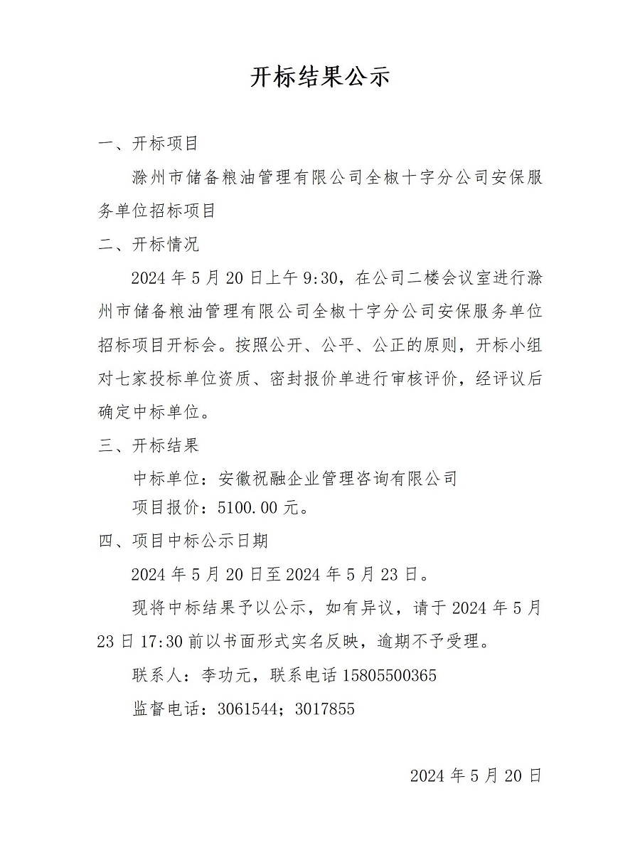 滁州市儲備糧油管理有限公司沙河分公司升級改造項(xiàng)目監(jiān)理中標(biāo)公示